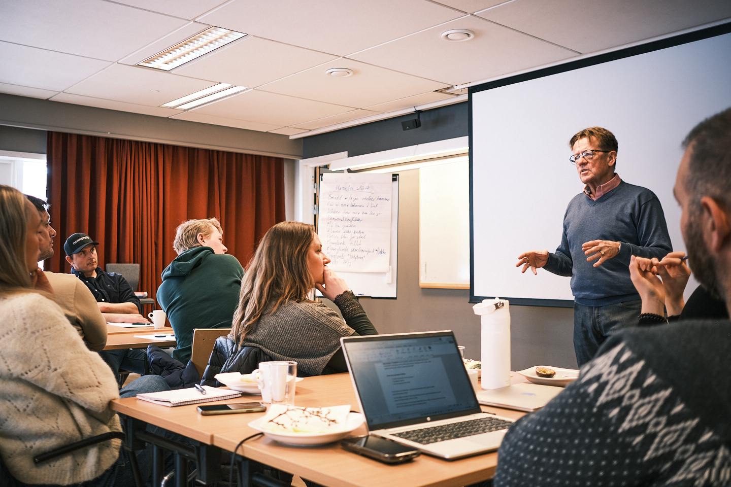 Deltakerne er mellomledere og ledertalenter fra bedrifter i regionen, og dagene på Bardøla ble fylt med forelesninger, faglige diskusjoner og gruppeoppgaver – der deltakernes egne erfaringer ble brukt aktivt som utgangspunkt for læring. Tilbakemeldingene fra første samling var gode, og engasjementet blant deltakerne var høyt.